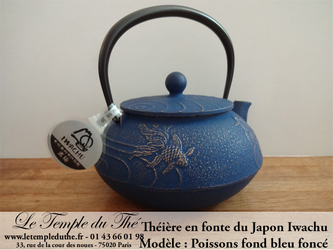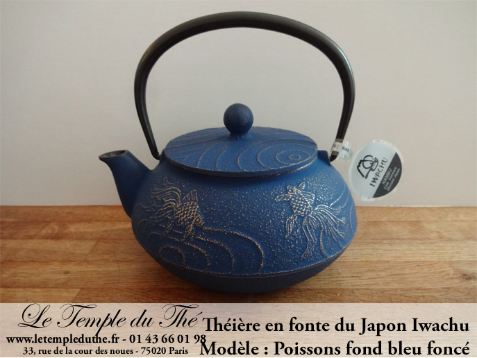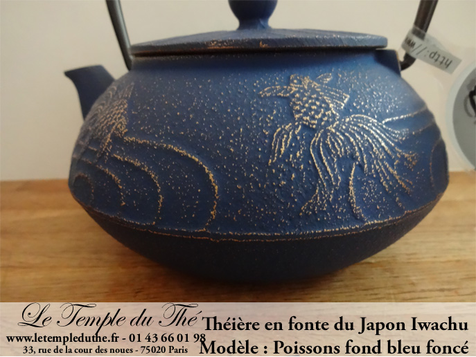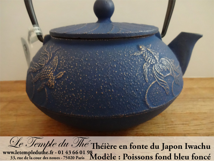 Théière en fonte du Japon poissons IWACHU 0.6 L fond bleu