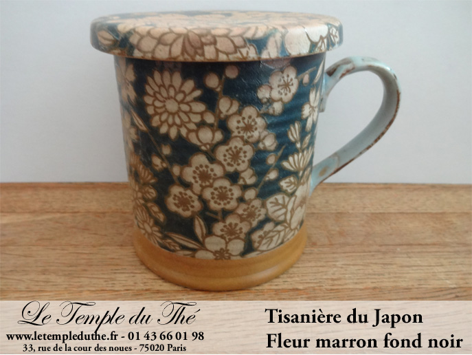 Tisanière du Japon modèle : Fleur marron fond noir